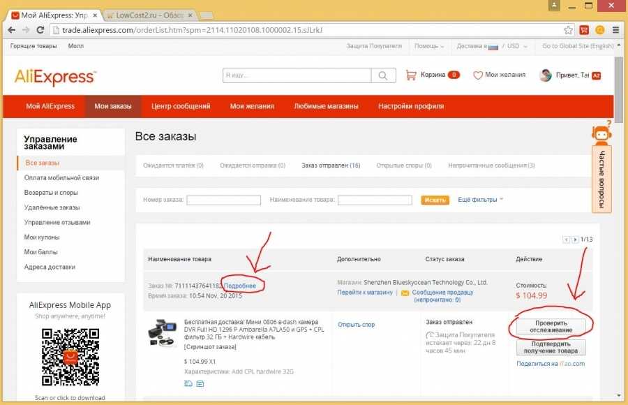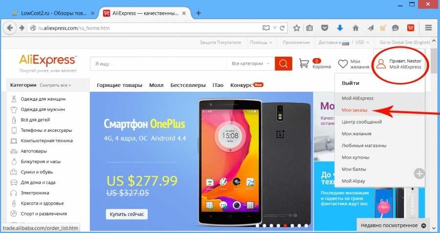 Заходим на сайт «Aliexpress«, проходим на страницу своих заказов
