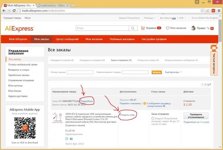 Пошаговая инструкция открытия диспута на Алиэкспресс: