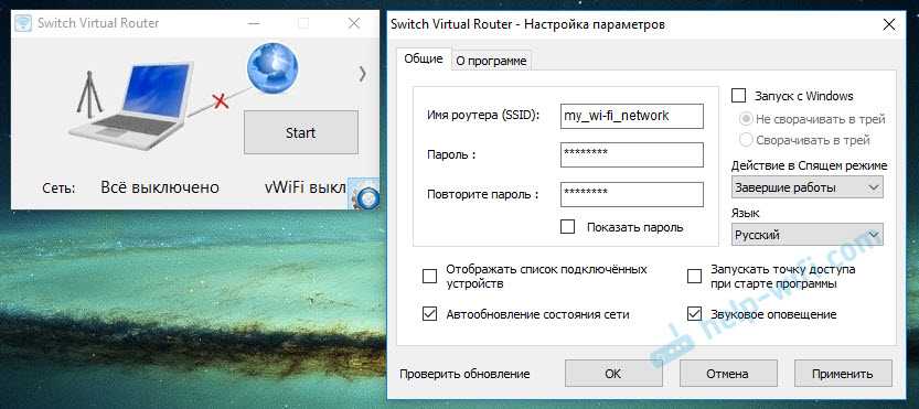 Но если вы все таки выбрали этот вариант, то могу посоветовать следующие программы: Virtual Router Plus, Maryfi, Connectify, Switch Virtual Router. О их настройке я подробно писал в отдельной статье: https://help-wifi.com/nastrojka-virtualnoj-wi-fi-seti/programmy-dlya-razdachi-wi-fi-s-noutbuka-v-windows-10-8-7-zapusk-tochki-dostupa/. И отдельная инструкция о настройке Switch Virtual Router.