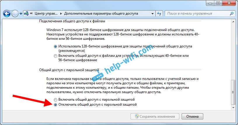 Прокручиваем страницу с настройками, находим и открываем вкладку Все сети, или Общий, и обязательно отключаем Общий доступ с парольной защитой.