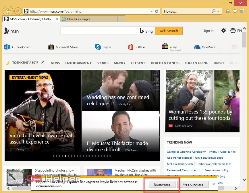 При первом запуске браузера Internet Explorer, вы увидите сообщение о том, что «Надстройка готова к использованию». Нужно нажать на кнопку «Включить».