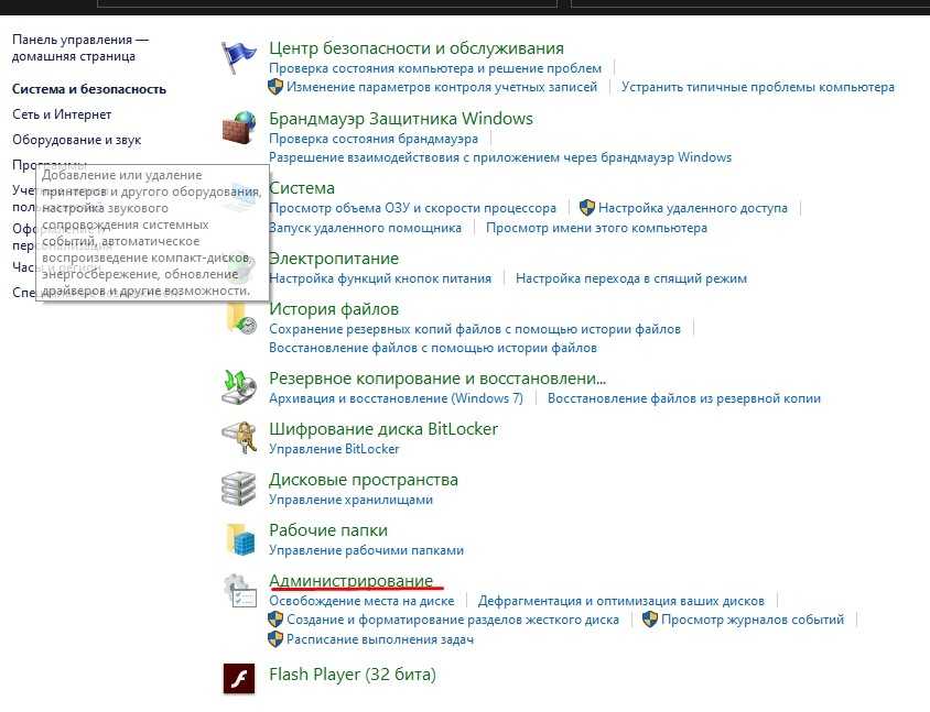 В «Администрировании» найти «Службы».