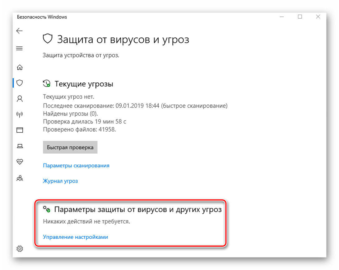 - Перейти в «Защиту от вирусов и угроз».