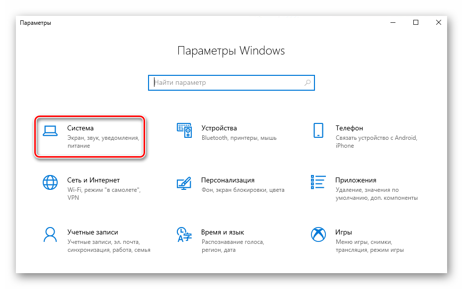 Далее необходимо зайти в раздел «Система». Кликните по кнопке с аналогичным названием в открывшемся окне.