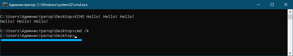 CLS (clear screen) — очистить экранCMD — запустить еще одну командную строкуCOLOR — установить цвет текста и фонаPROMPT — изменить приглашение в командной строкеTITLE — назначить заголовок окна для текущего сеансаEXIT — выход из командной строки