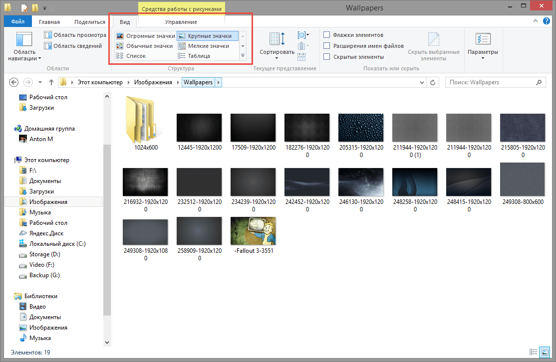 2. Отключаем миниатюры в Проводнике для папок с большим количеством данных
