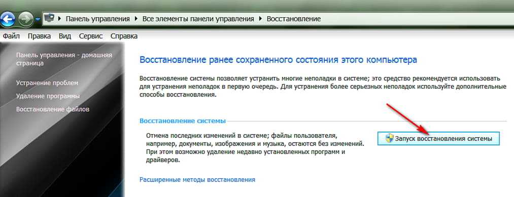 Устранить возникшие проблемы можно восстановив раннее состояние компьютера.