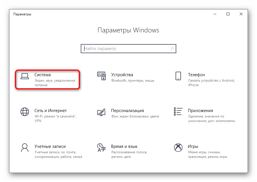 - В меню «Параметры» вас интересует первый раздел «Система».