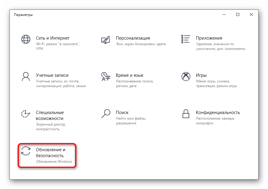 Шаг 2: Нажмите кнопку «Обновление и безопасность».