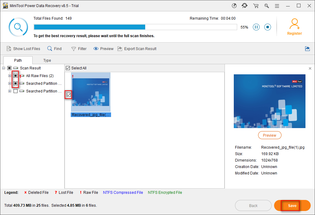 Шаг 5 : нажмите Сохранить и выберите другой диск, на котором достаточно свободного места для хранения восстановленных файлов.
