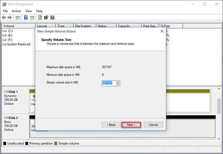 - Нажми на следующий в окне приветствия мастера создания нового простого тома.