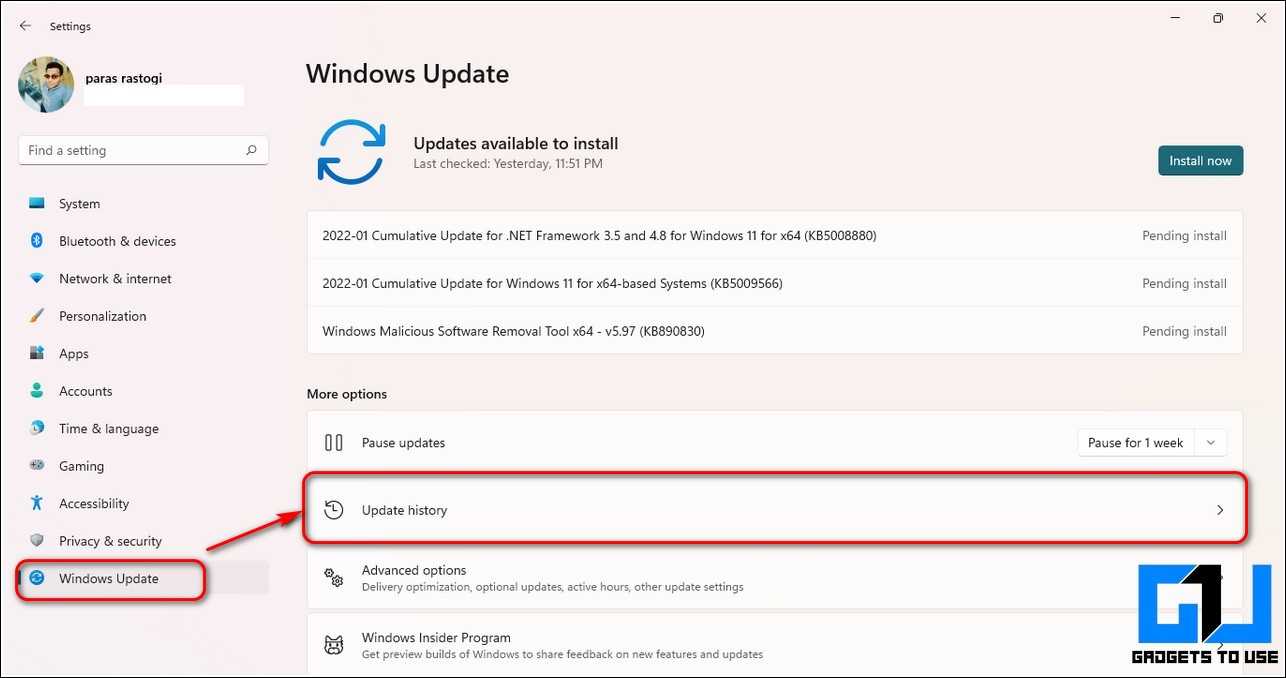 Если сенсорная панель на вашем ноутбуке недавно перестала работать после обновления системы Windows 11, это может быть связано с установкой несовместимого драйвера сенсорной панели, который был установлен вместе с Центром обновления Windows. Чтобы решить эту проблему, вам необходимо вручную откатить/удалить последнее обновление, которое вы применили к своей системе Windows 11.