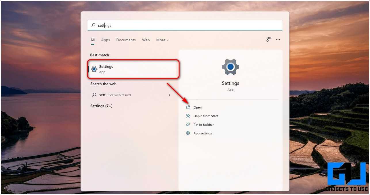 Откройте приложение «Настройки» на ноутбуке с Windows 11.