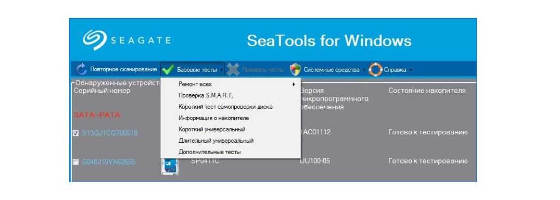 Способ №3: Тестирование накопителя утилитой SeaTools