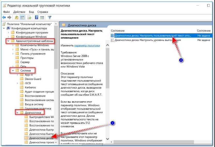 Как убрать сообщение о неполадках диска через gpedit на Windows 7 и 10