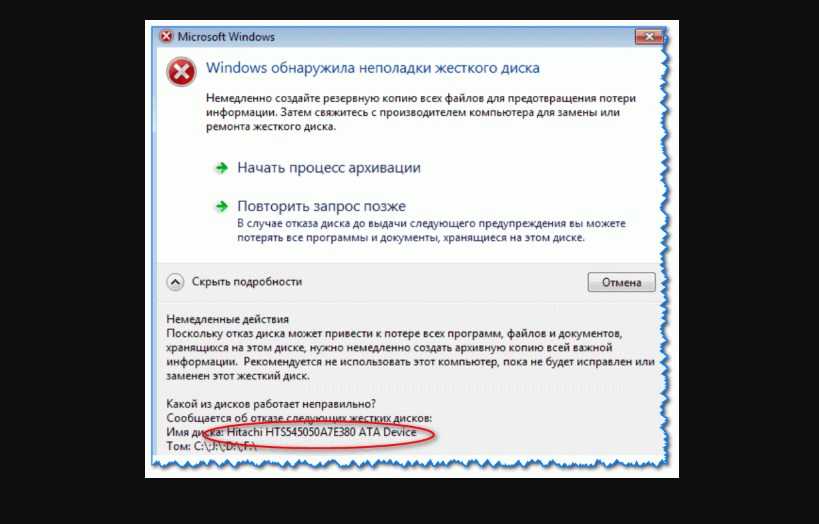 Уведомление о неполадках жесткого диска с ОС Виндовс