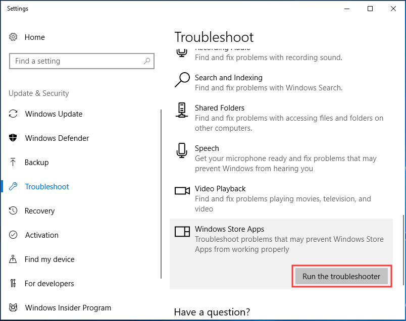 - Запустить встроенное устранение неполадок для приложений из магазина Windows (Параметры — Обновление и безопасность — Устранение неполадок — Приложения из магазина Windows).