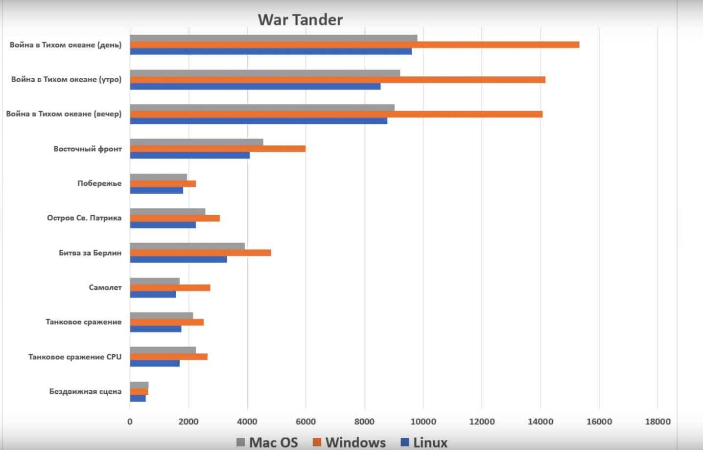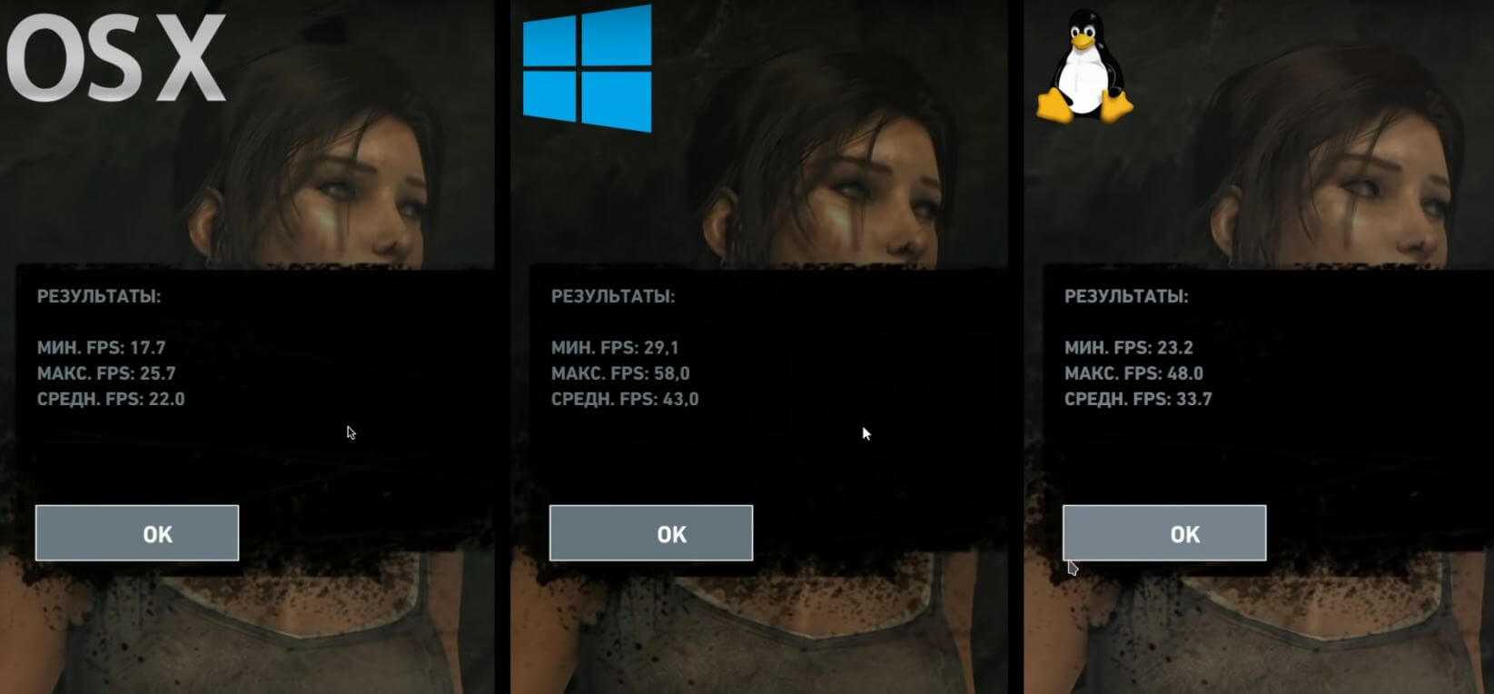 Лидер неизменн но mac os показывает лучшие результаты во всех тестах без исключения не всегда разница значительна но факт есть факт таких проектов немного в основном linux быстрее в играх чем mac os особенно в портированных.