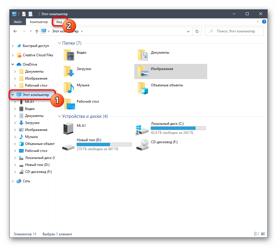 - Откройте «Проводник», переместитесь в раздел «Этот компьютер» и откройте вкладку «Вид».