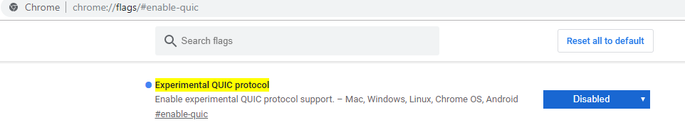 - Откройте браузер и введите команду chrome://flags/#enable-quic;