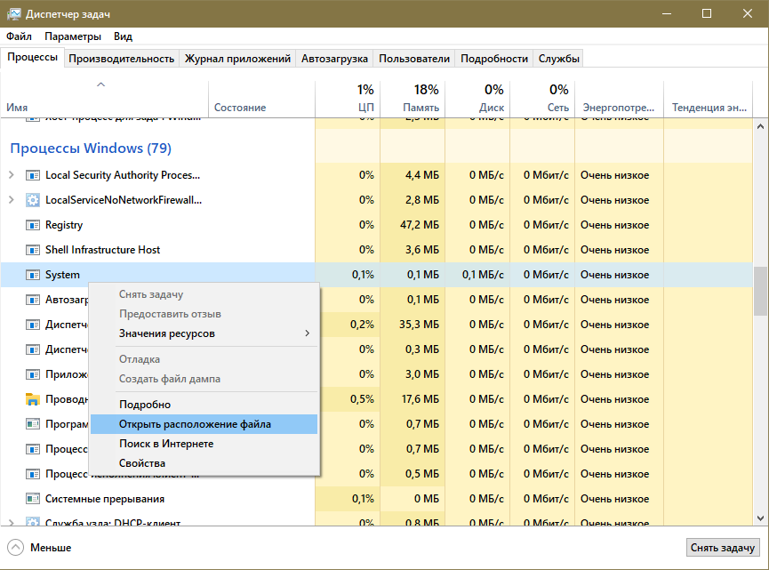 Сделать это можно в диспетчере задач: нужно всего лишь кликнуть по желаемому пункту ПКМ и выбрать «Открыть расположение…».