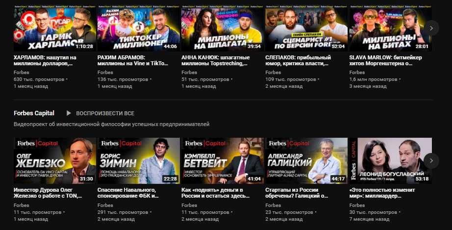 Аудитория B2C, напротив, может больше заинтересоваться развлекательным контентом, даже если бизнес «серьезный». На Yotube-канале Forbes есть и деловой, и развлекательный контент, но последний обычно собирает в десятки раз больше просмотров.