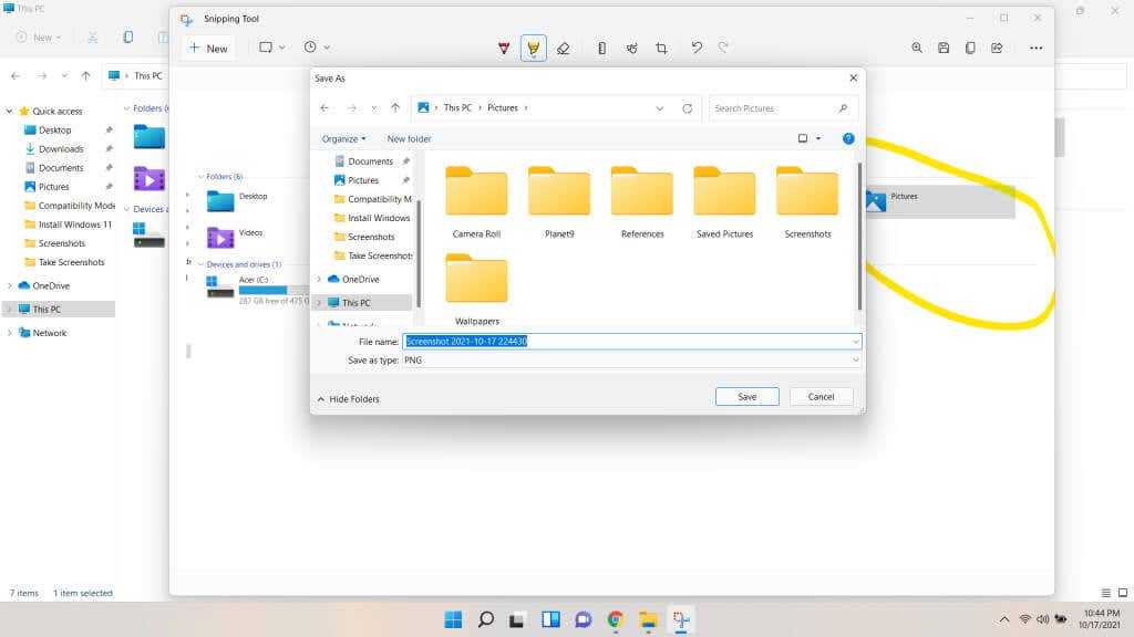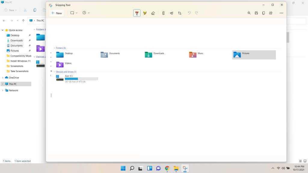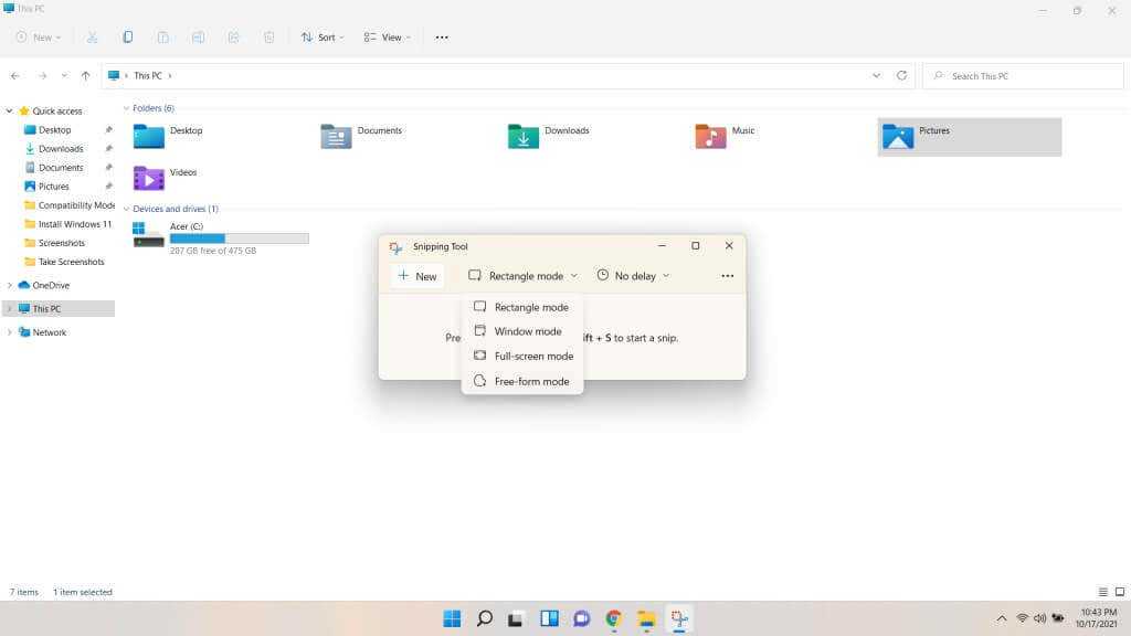 Использование Snipping Tool напрямую — лучший способ сделать постоянные снимки экрана, так как сочетание клавиш копирует только фрагменты в буфер обмена. С помощью приложения вы можете сохранять снимки экрана с произвольным именем, делать снимки с задержкой и даже комментировать фрагменты, рисуя поверх них.