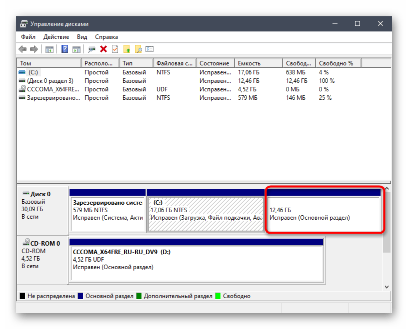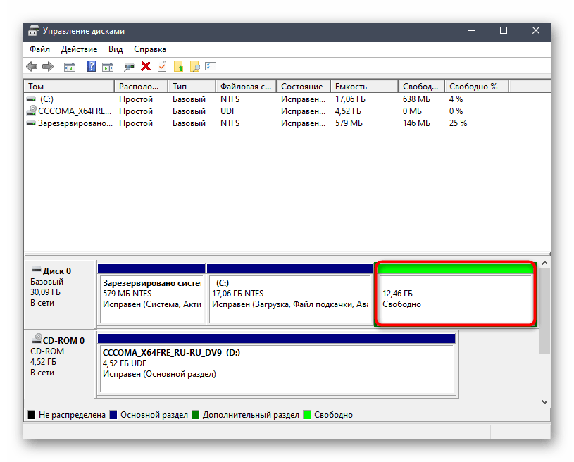 Пространство обрело атрибут «Свободно». В будущем вы можете расширить уже существующие тома или создать новый, используя именно этот объем, но мы на этом не будем останавливаться, а сразу предлагаем перейти к следующему шагу.