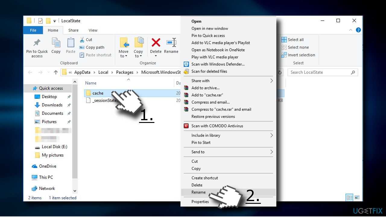 Способ №8. Переименуйте папку Cache-файлов с Windows Store