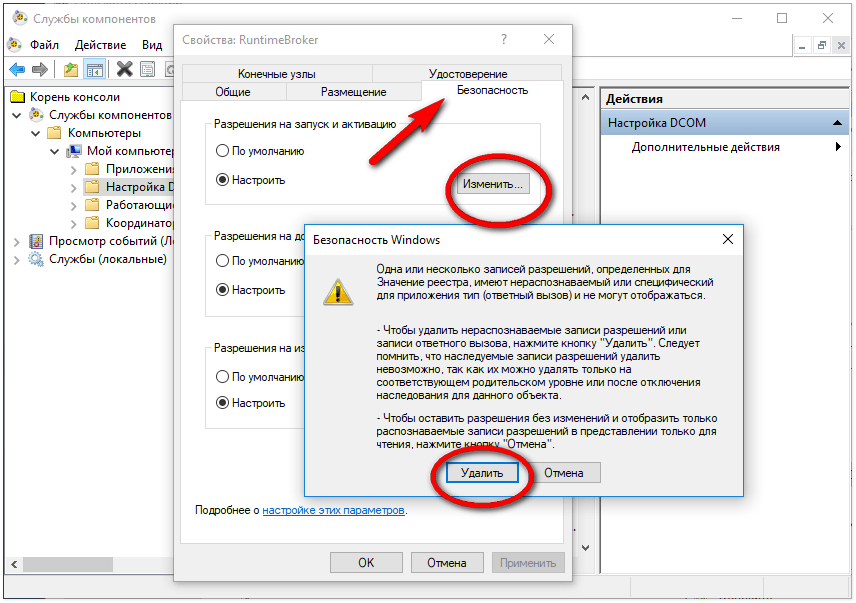 В разрешениях на запуск и активацию нажмите «Изменить». Если при этом вы получите запрос на удаление нераспознаваемых записей разрешений, сразу удаляйте их. После этого в окошке разрешений нажмите «Добавить».