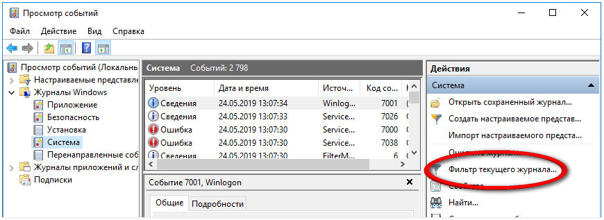 Шаг 4. Перезагрузить компьютер, и проверить журнал событий на наличие указанных ошибок.