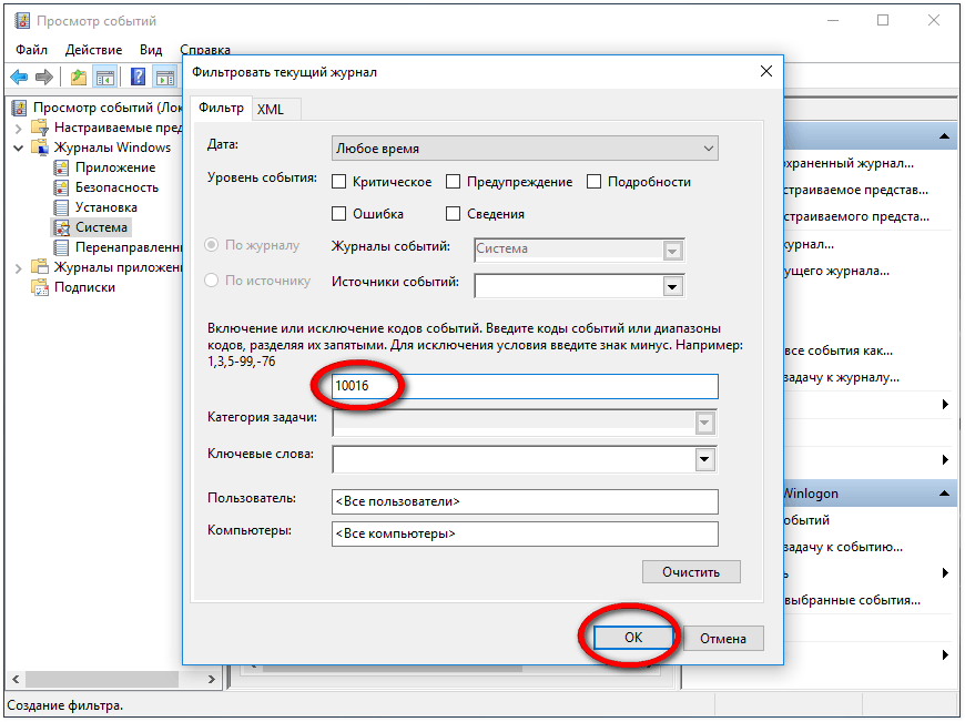 Это не составляет особой проблемы, поскольку все данные указываются в описании самой ошибки. Итак, перейдем ближе к делу. Открыв приложение «Просмотр событий», выберите Журналы Windows > Система и отфильтруйте записи по коду 10016.