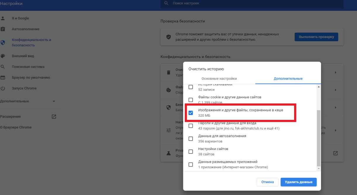 - Во вкладках «Основные настройки» и «Дополнительные» выбрать все пункты и нажать кнопку «Удалить данные».