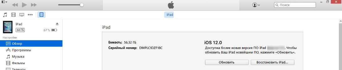 - Подключить устройство к iTunes.