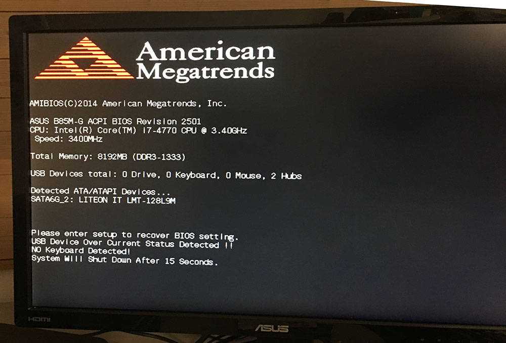 Если при включении компьютер пишет сообщение USB device over current status detected! System Shut Down after 15 sec