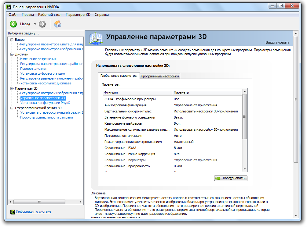 Чтобы устранить недостаток, нужно открыть панель управления видеокартой и привести настройки в соответствие с графическими параметрами, установленными в игре.