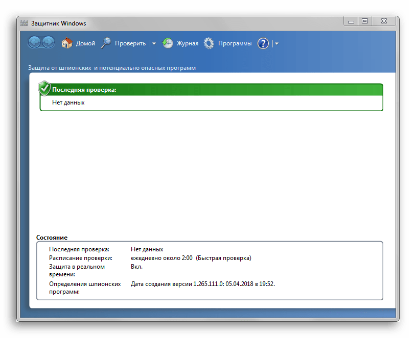 Спустя некоторое время откроется главное окно антивируса, выводящее данные о последней проверке. Это значит, что антивирус включился и полностью готов к работе.