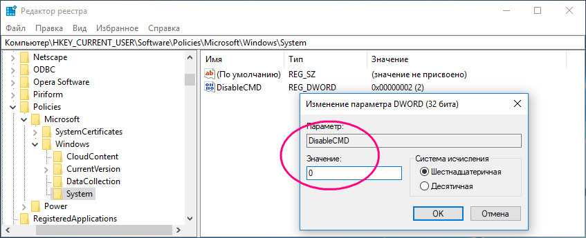 Запускаем вложенные друг в друга блоки с параметрами: Microsoft — Windows — CurrentVersion — Policies — System.