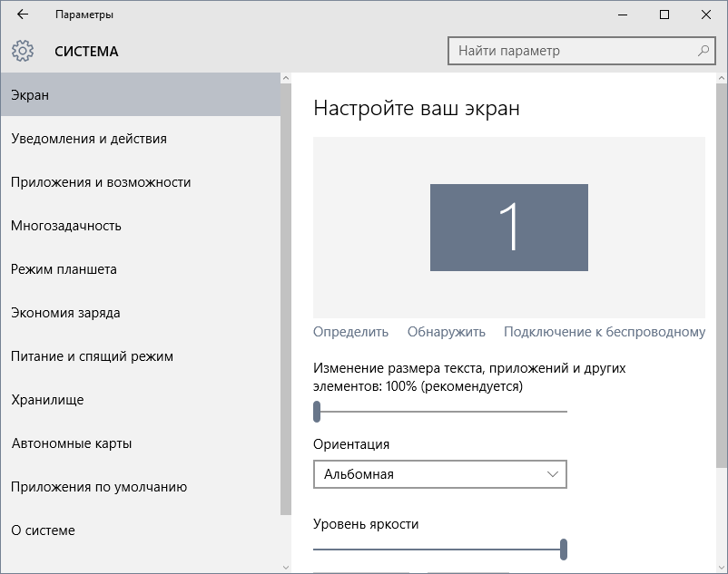 - Перейдите в раздел «Система» и выберите в левой части экрана вкладку «Экран»;