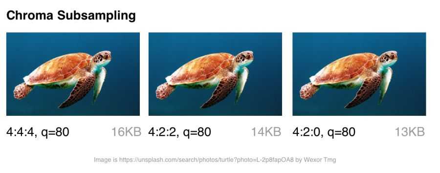 Варианты цветовой субдискретизации для JPEG с качеством 80