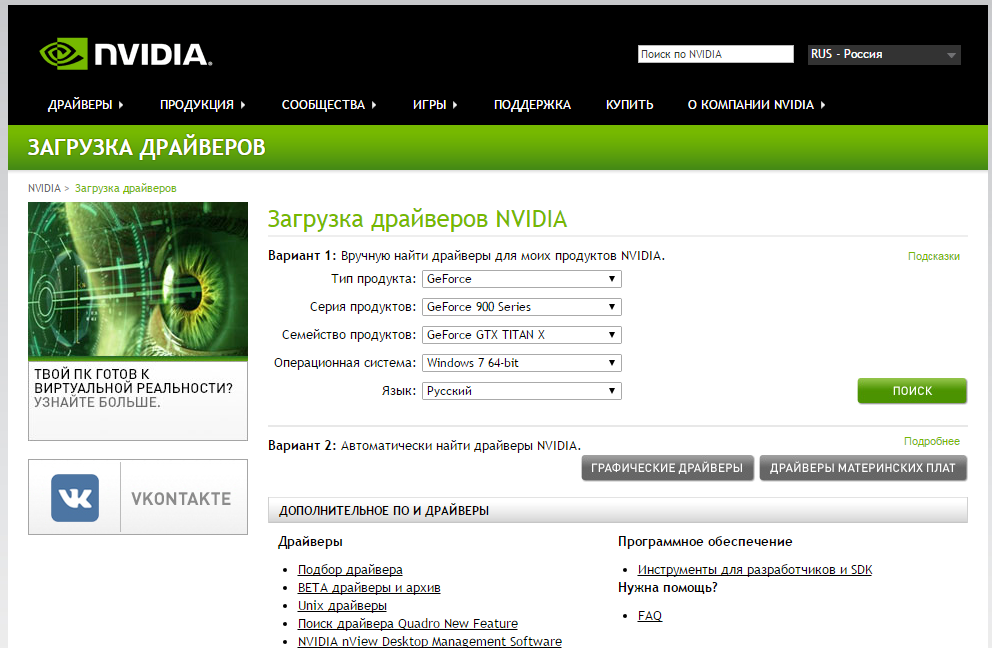 вашего графического адаптера и скачать с него последний пакет драйверов