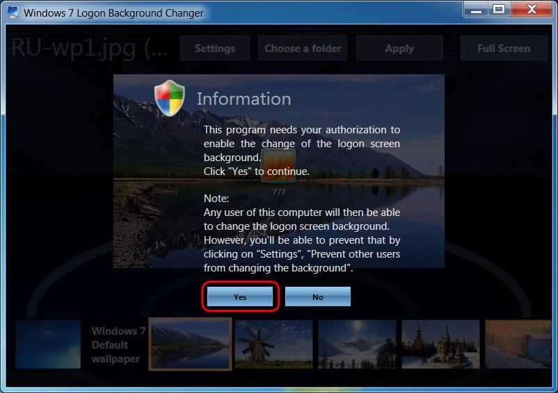 Эта утилита, как и предыдущая, также предусматривает возврат исходной картинки приветствия Windows 7 в любое время.