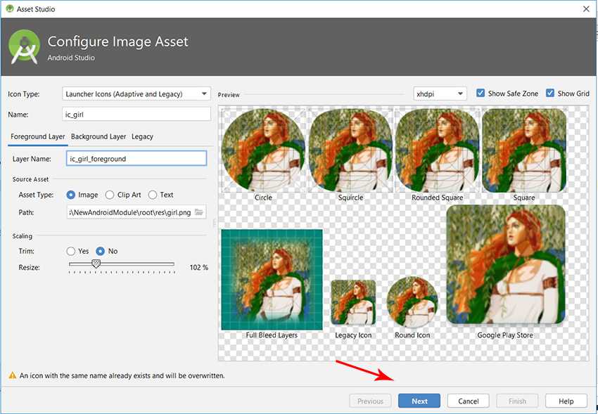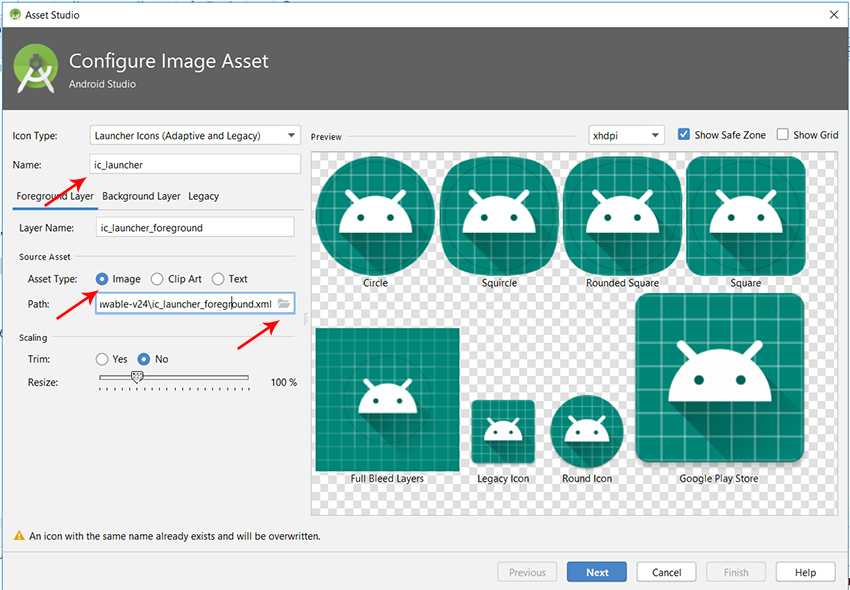 Здесь, как можно увидеть на скриншоте, мы выбираем: New > Image Asset. И попадаем во вкладку, где необходимо указать путь к изображению, задать ему имя и выбрать тип (в нашем случае Image):
