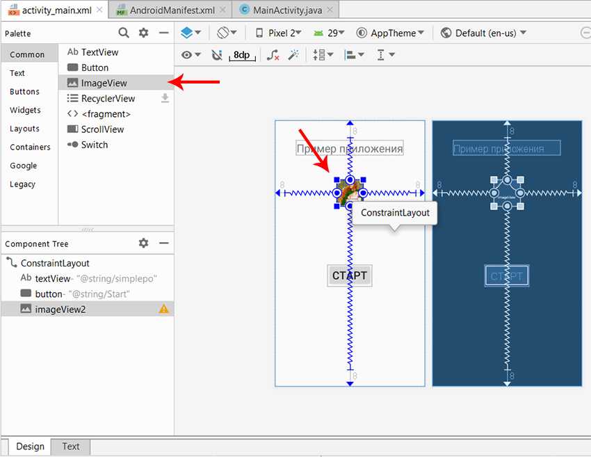 Для наглядности я задал красный цвет для фона ImageView. По умолчанию, у меня картинка установилась в режиме andro .