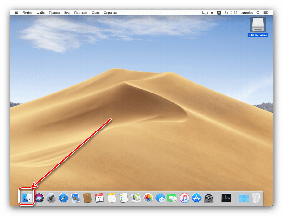 Затем щелкните значок Finder в доке, чтобы вывести Finder на передний план. Finder — это встроенное в ваш Mac приложение для работы с файлами, и оно всегда работает.