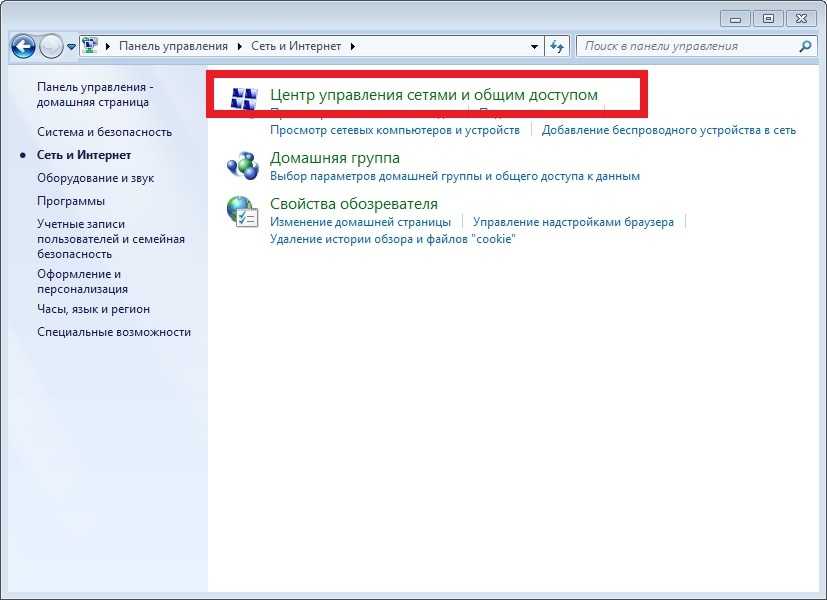 Откройте меню Пуск → Панель управления → Сеть и Интернет → Центр управления сетями и общим доступом: