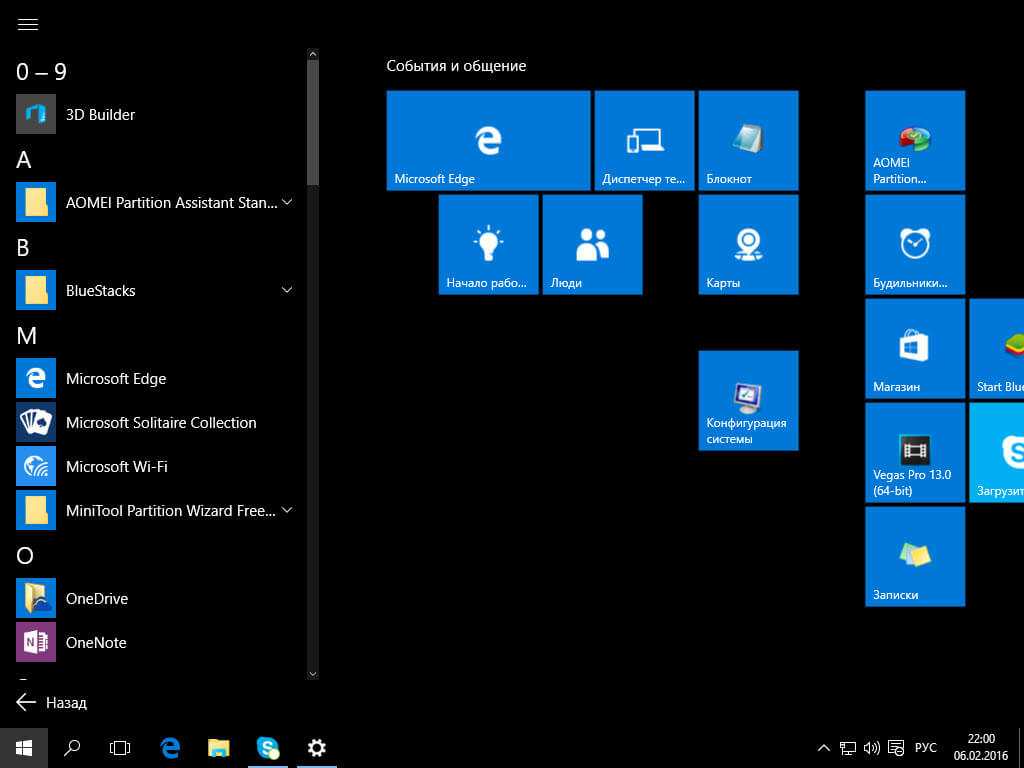 Меню в Windows 10 открывается так же по кнопке «Пуск». Слева в самом верху размещаются привычные по предыдущим версиям Windows, ярлыки часто используемых программ, а ниже идут ярлыки всех приложений по алфавиту. Правую часть меню заполняют плитки. Это те же ярлыки только чуть крупнее.