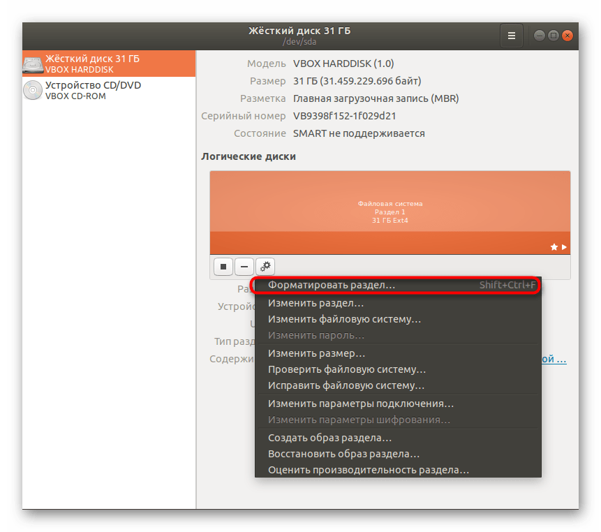 И хоть я считаю, что GParted более чем достаточно для решения поставленной задачи, стоит рассказать о еще одном варианте. Пользователи рабочего стола Gnome (да и не только они) любят встроенную в эту оболочку дисковую утилиту. Это некий стандарт для большинства дистрибутивов. И вам никто не мешает ее попробовать.