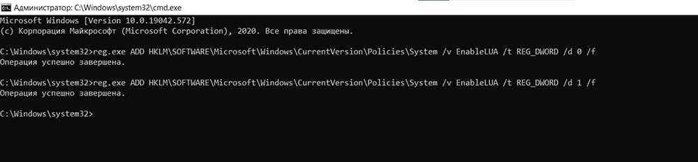 Завершив выполняемую задачу, настоятельно рекомендуется снова включить UAC. В последнем случае необходимо заменить значение «0» на «1».