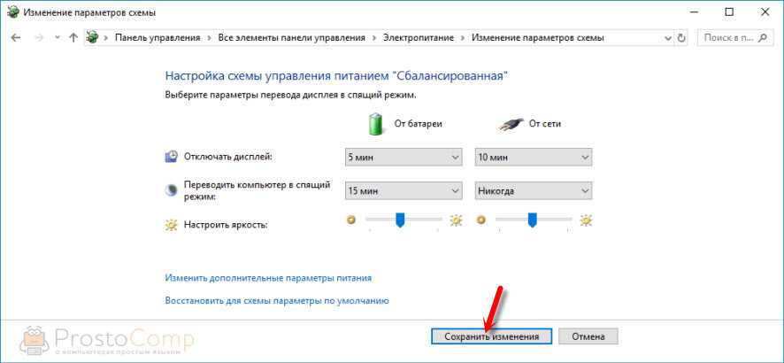 - с правой стороны отображается меню «Дополнительные параметры питания»;